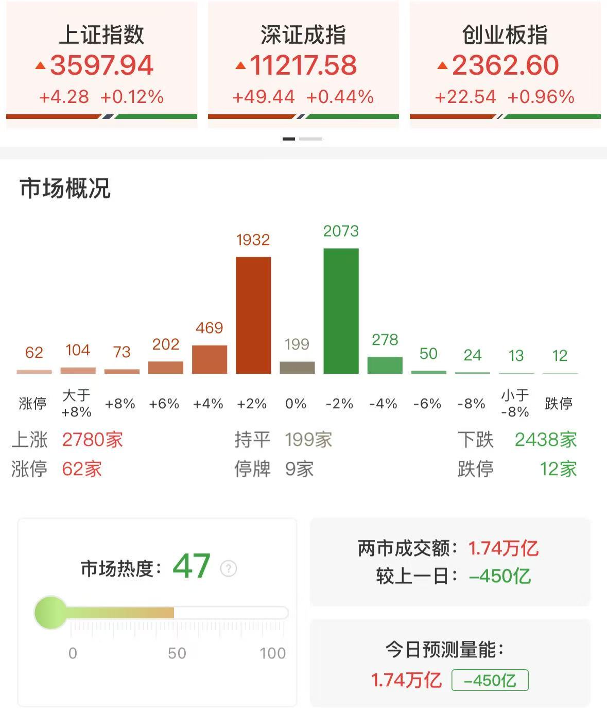 财联社7月28日讯,市场全天震荡反弹,创业板指领涨。沪深两市全天成交额1.74万亿,较上个交易日缩量450亿。盘面上,市场热点较为杂乱,个股涨多跌少,全市场超2700只个股上涨。从板块来看,算力硬件股再度爆发,胜宏科技等多股再创历史新高。创新药概念股维持强势,恒瑞医药等涨停。军工、商业航天概念股表现活跃。硕贝德20CM涨停。下跌方面,钢铁、煤炭等周期股集体调整,柳钢股份等多股跌超5%。截至收盘,沪指涨0.12%,深成指涨0.44%,创业板指涨0.96%。
