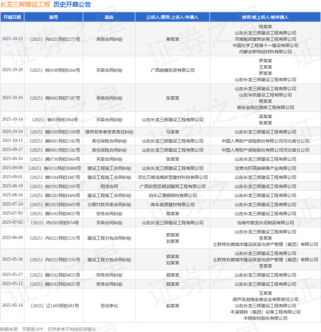 本站消息,根据天眼查APP显示,近日公布了一则山东长龙三辉建设工程有限公司作为被告/被上诉人的开庭公告配资股票开户网站,详细内容如下: